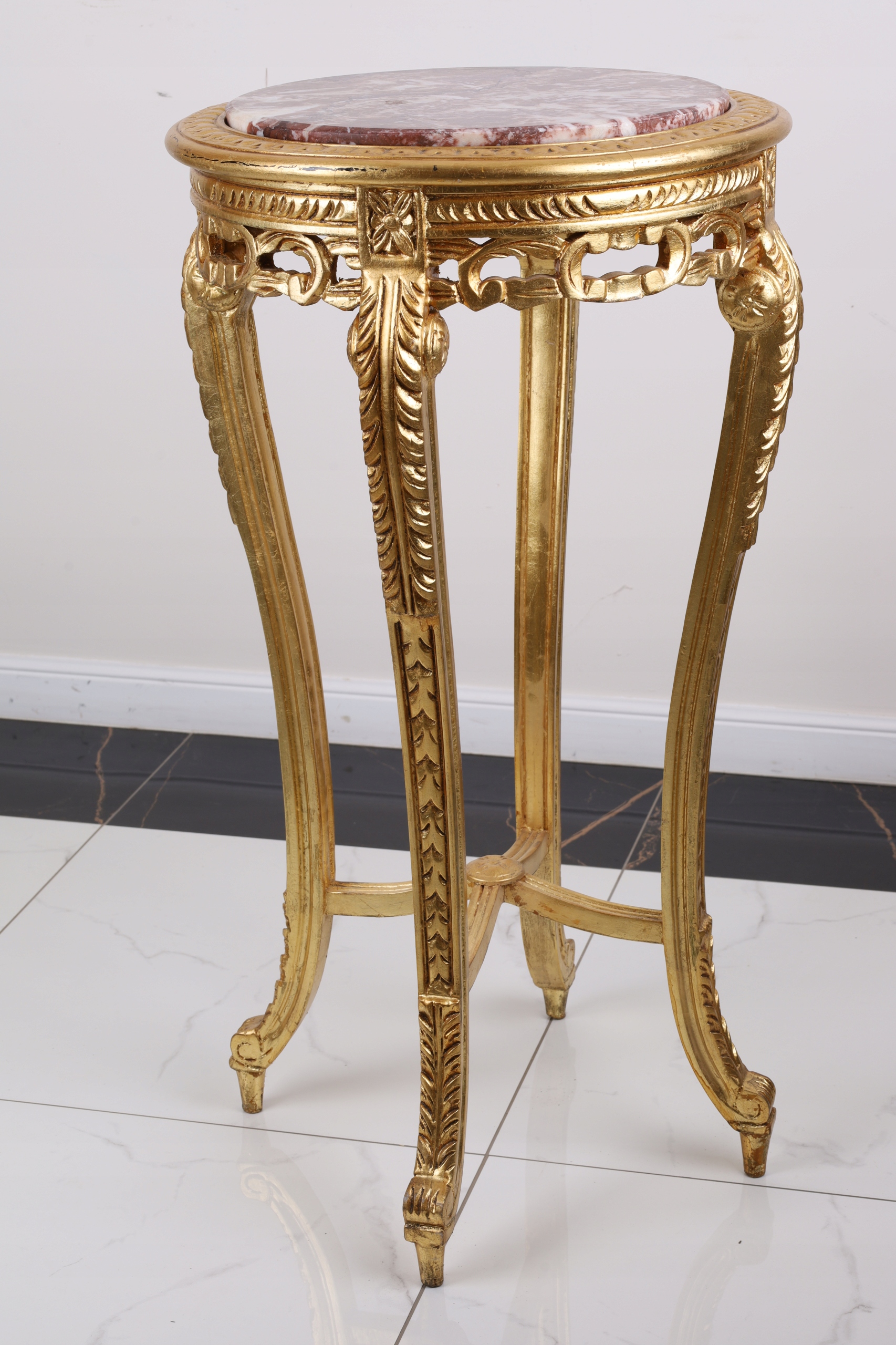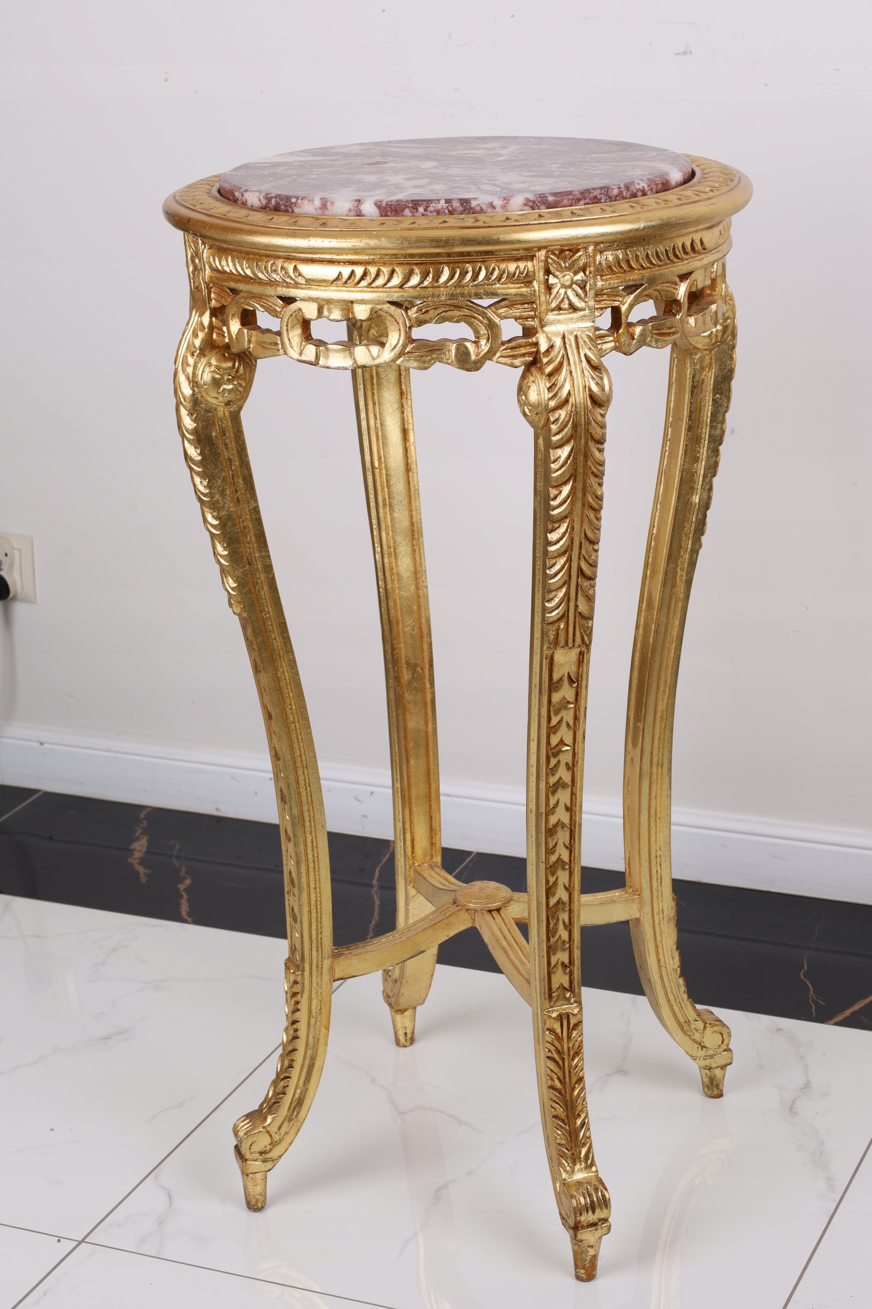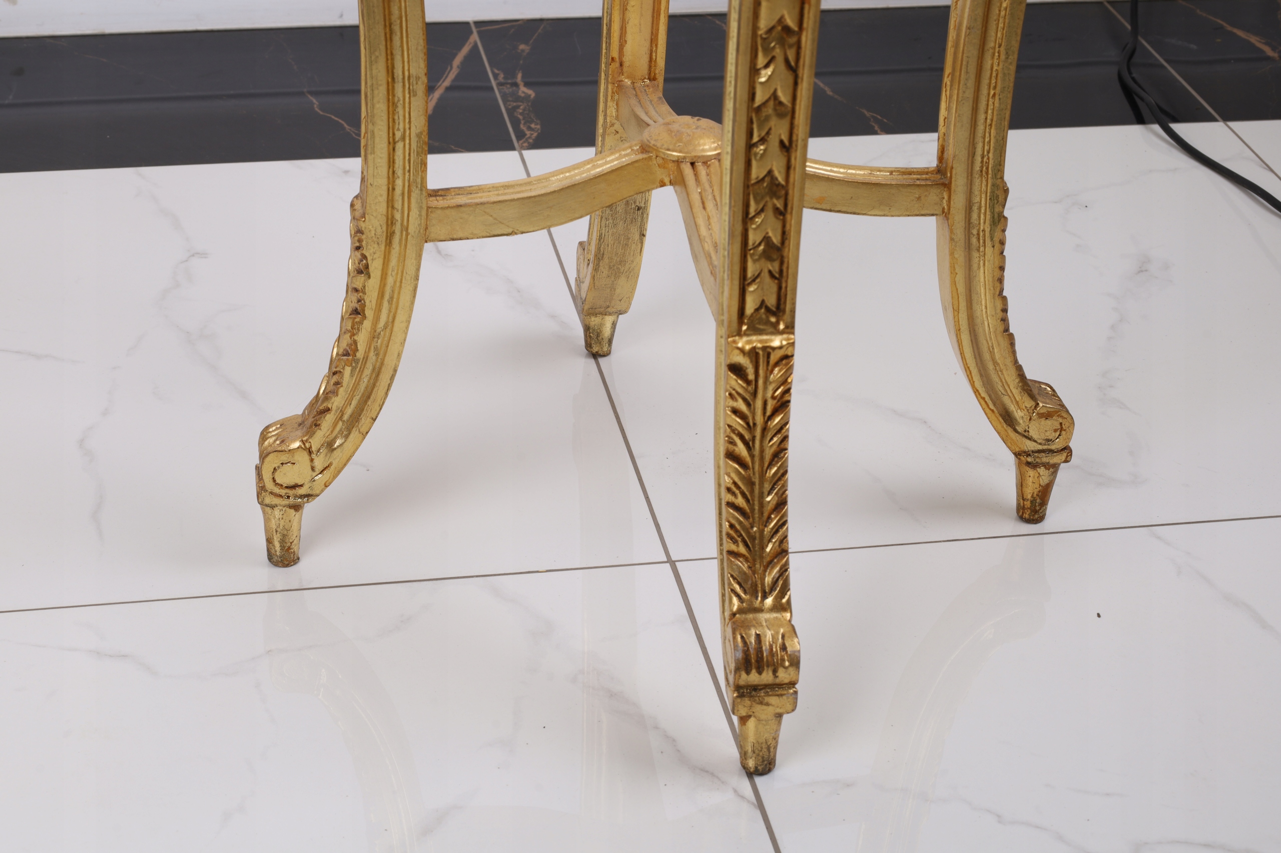 ZŁOTY Stylowy Stolik -KWIETNIK – okrągły blat marmurowy