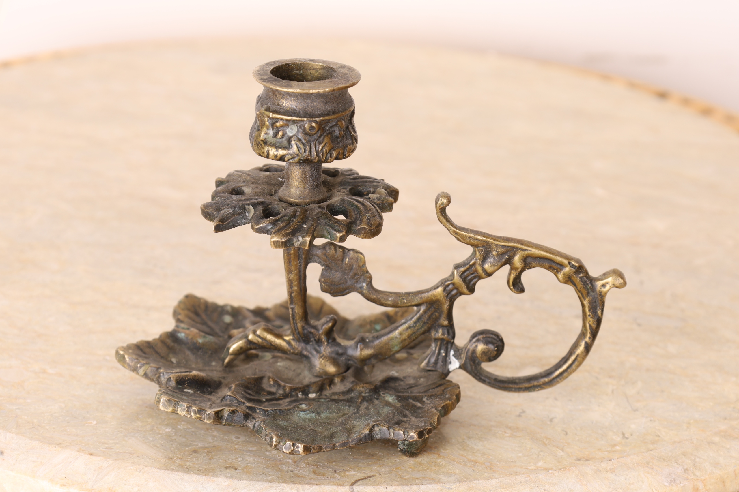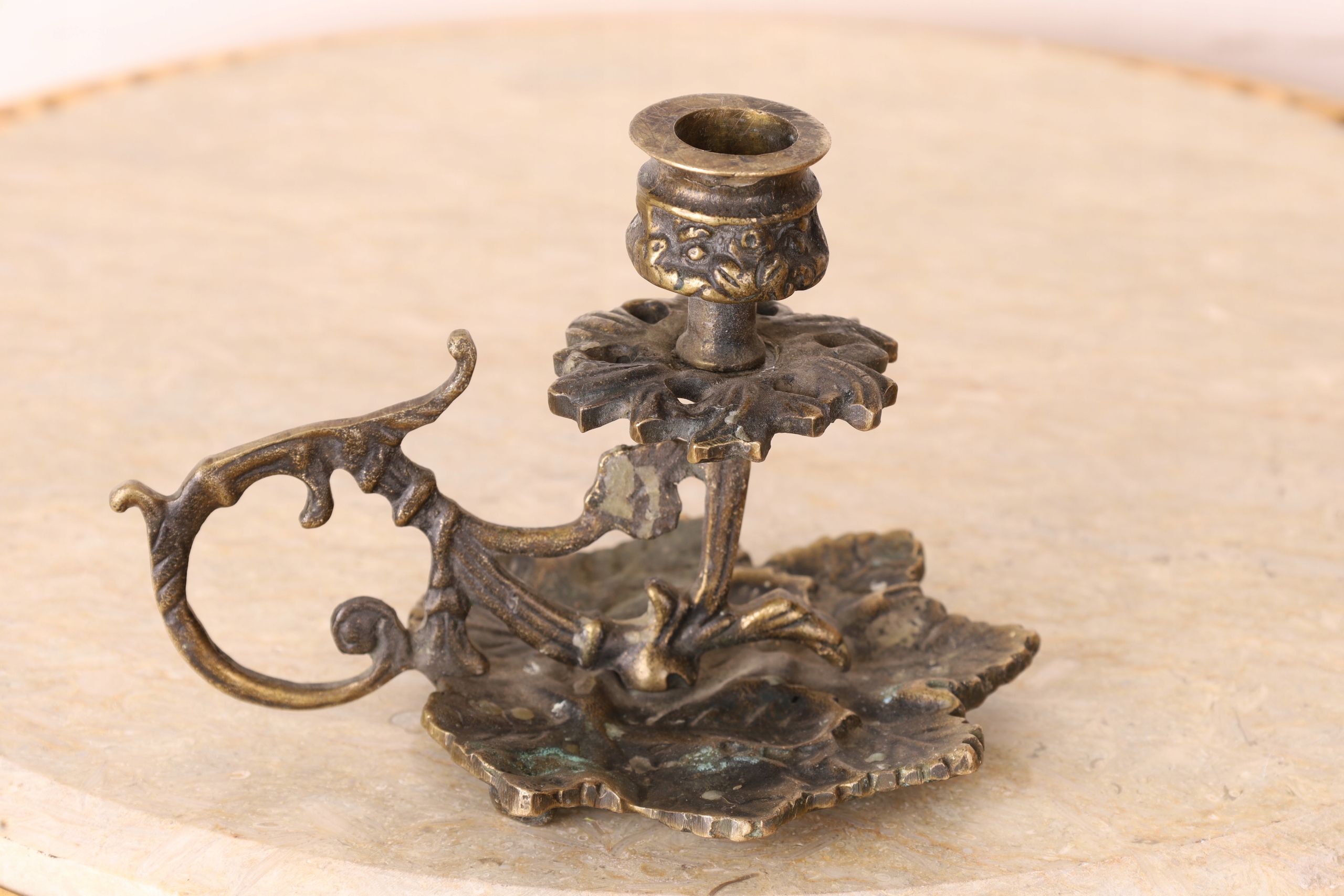 ZŁOTY ŚWIECZNIK NA LIŚCIU – MOSIĘŻNY Z UCHWYTEM
